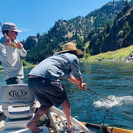 Most fishing is done out of the drift boat or raft, which is the most comfortable way to fish the big rivers, along with some wade fishing. In most cases, the rivers are hard to access by foot. We provide all the gear necessary including quality boats, rods, reels, and flies. Most of the guides have some secret home brews they know will get you that Bite.